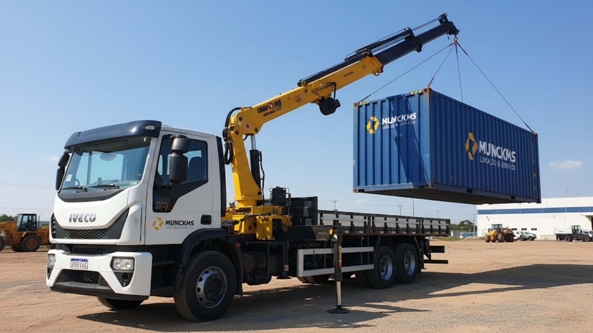 O caminhão Munck é o mais versátil para a logística rural. Ele oferece um equilíbrio entre capacidade de içamento (até 20 toneladas) e a tração necessária para operar em terrenos de fazenda (lama, terra batida).